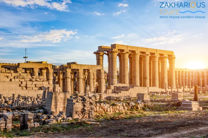 In Luxor angekommen, besichtigen Sie den in der Zeit des Neuen Reiches erbauten Luxor-Tempel, der seit 1979 auf der Weltkulturliste der UNESCO steht. Der Tempel war dem Gott Amun, seiner Gattin Mut und deren Sohn Chons geweiht und wurde in mehreren Abschnitten errichtet. Baubeginn war in der 12. Dynastie, der letzte Umbau erfolgte durch Alexander den Großen, der die Tempelanlage in eine Festung integrierte.